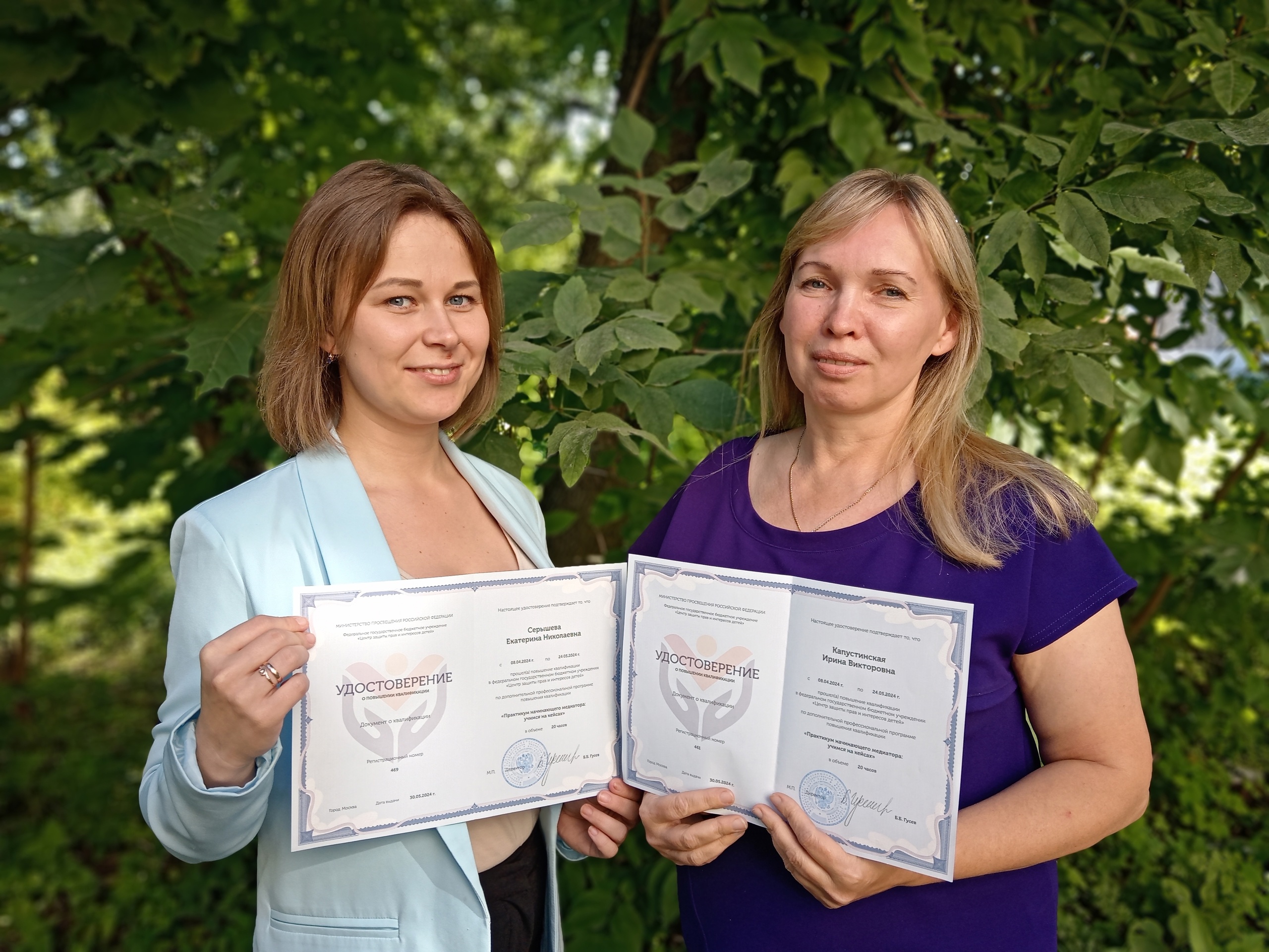 Медиаторам Службы семейной медиации Ирине Капустинской и Екатерине Серышевой вручили удостоверения о повышения квалификации.